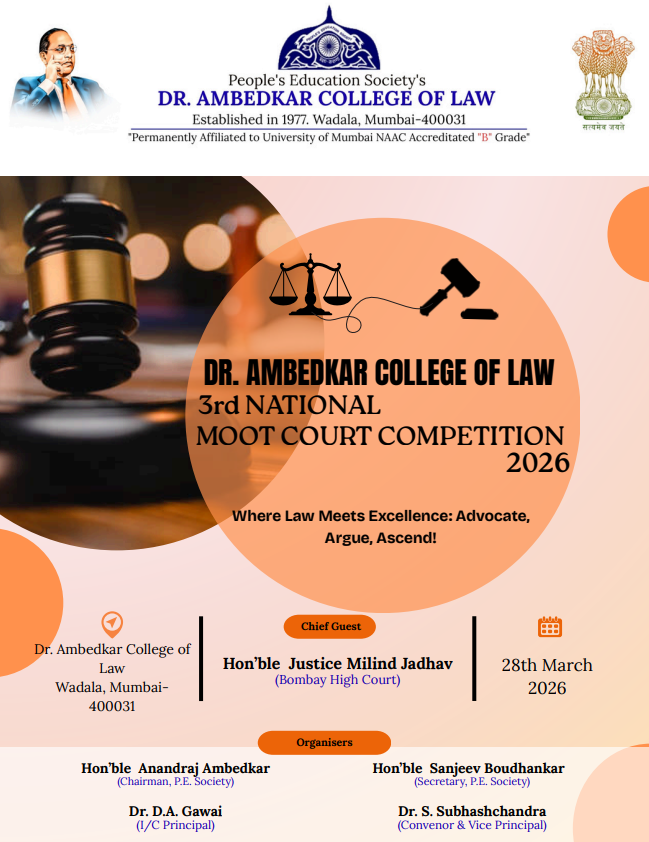 People's Education Society, which conducts Dr. Ambedkar College of Law, was founded on 8th July, 1945 by Bharat Ratna Dr. Babasaheb Ambedkar, M.A., Ph.D., D.Sc. (London), LL.D. (Columbia), D.Lt. (Osmania), Bar-at-law, People's Education Society derives its inspiration from the teaching and ideals of Lord Buddha.lt believes in the principles of social justice.