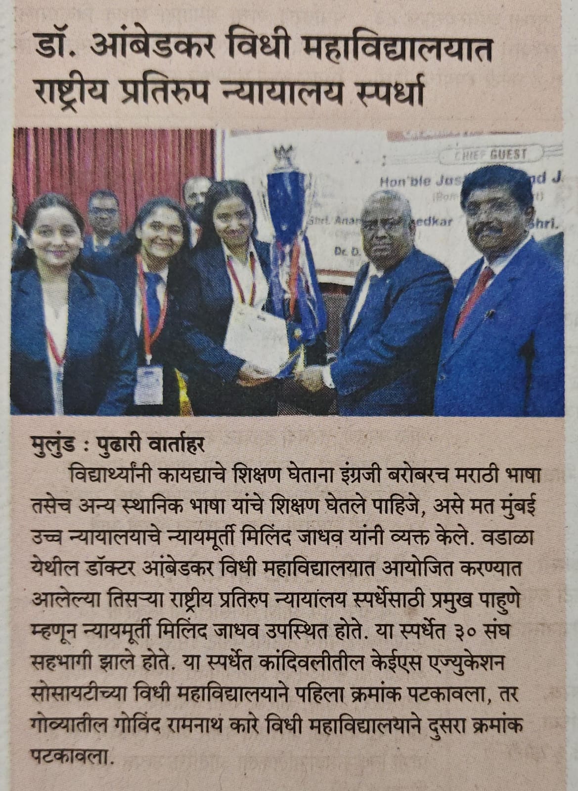As a principal of Dr.Ambedkar college of Law, Mumbai. It is a matter of great honoured and pride for me to introduce the only premier law college in capital city of Maharashtra.