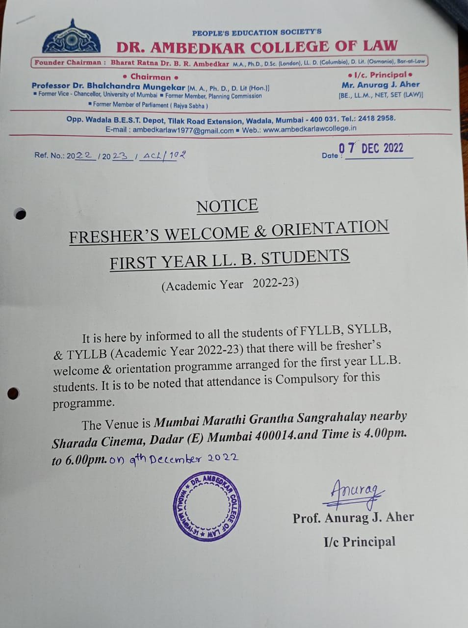 As a principal of Dr.Ambedkar college of Law, Mumbai. It is a matter of great honoured and pride for me to introduce the only premier law college in capital city of Maharashtra.